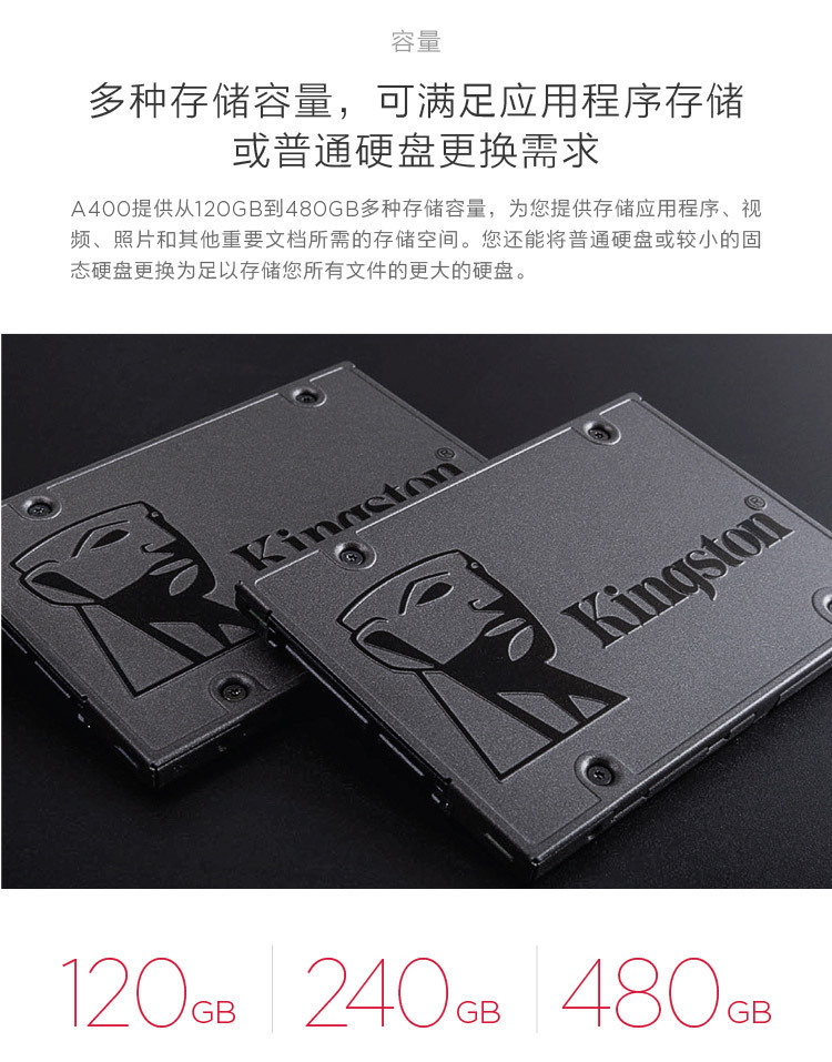 适用于金士顿 A400系列SA400S37/240G480G SATA3 固态硬盘