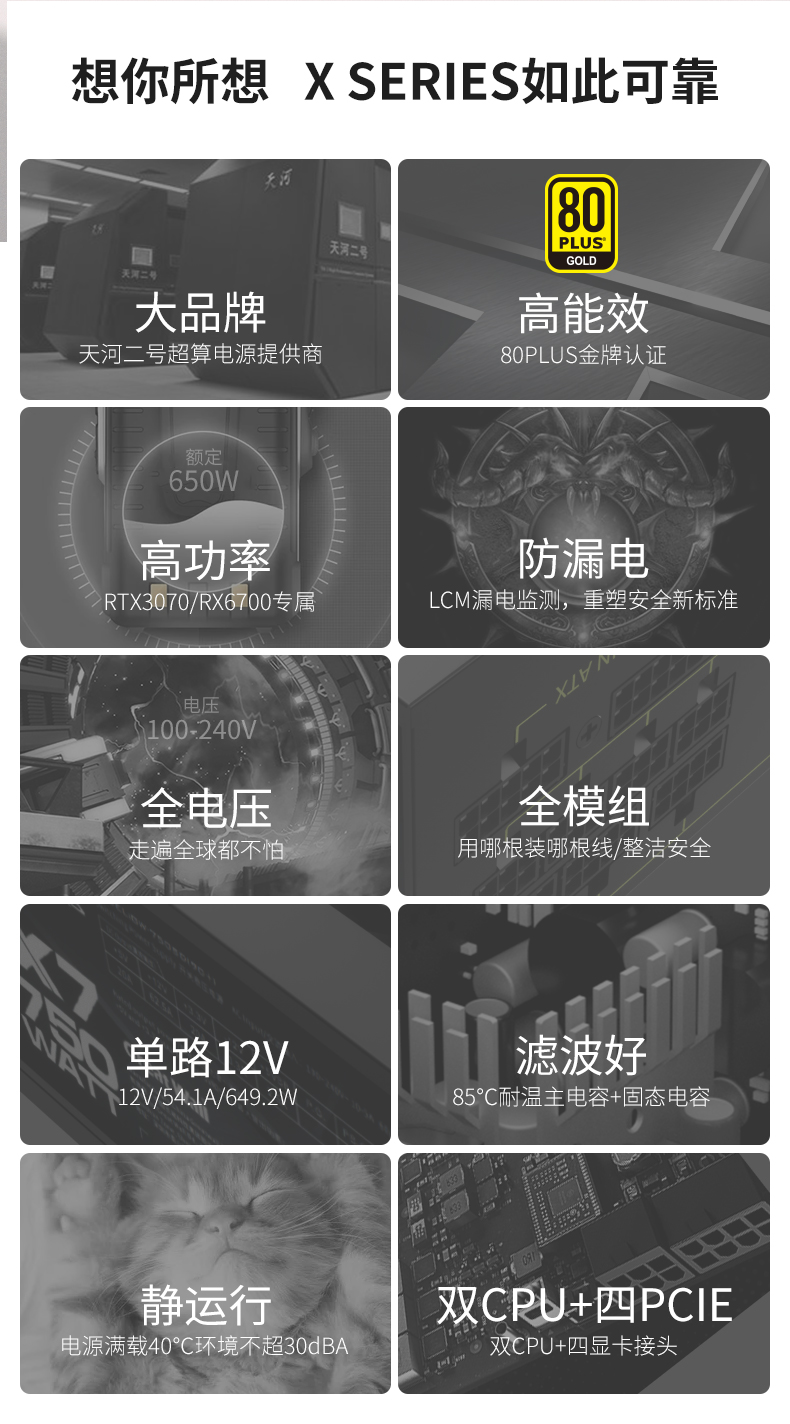 适用长城X6金牌 额定650W全模电源宽幅单路12V静音台式机电源适用