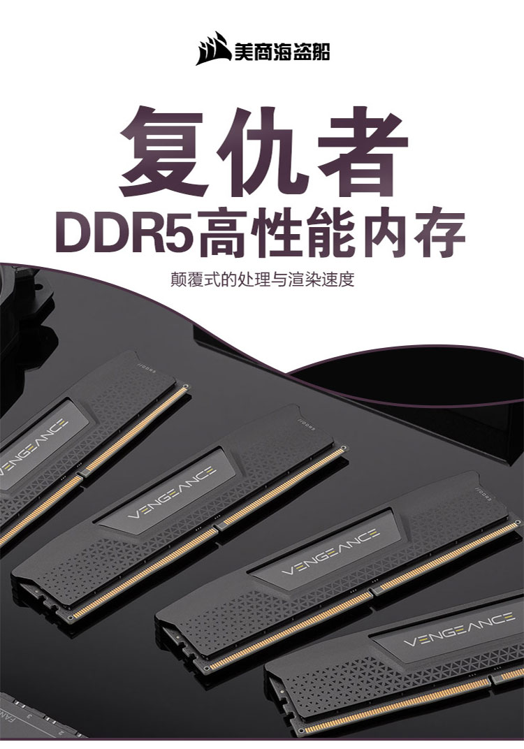 美商海盗船 32GB(16G×2)套装 DDR5 7200 台式机内存条 复仇者