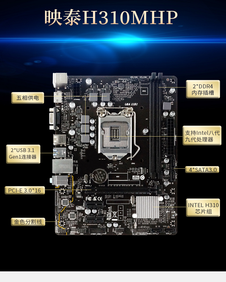 适用BIOSTAR/映泰 H310MHP h310主板1151针支持i3-9100f 9400f 96