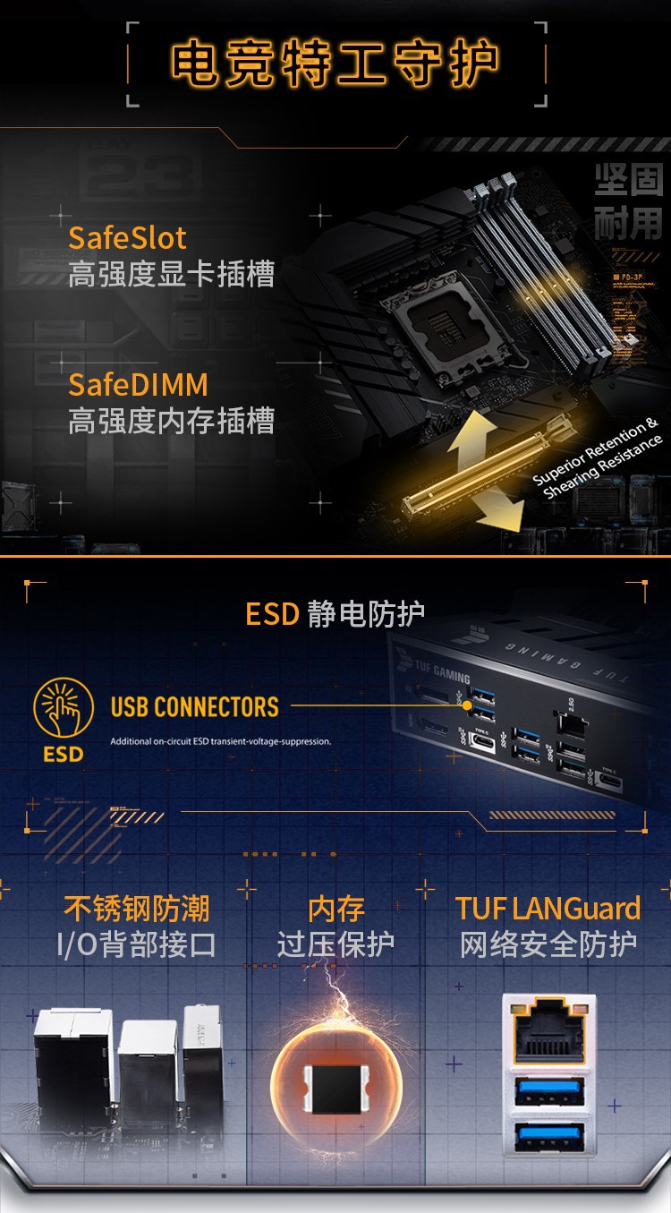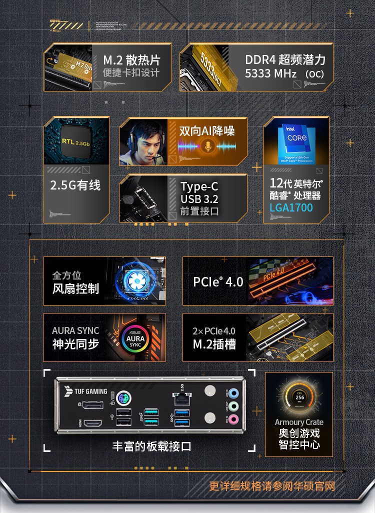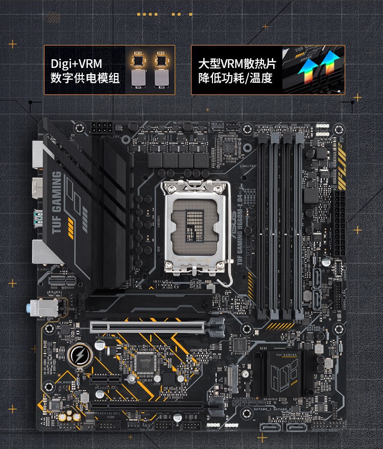 官方华硕(ASUS)TUF GAMING B660M-E D4适用CPU 12700/12400F
