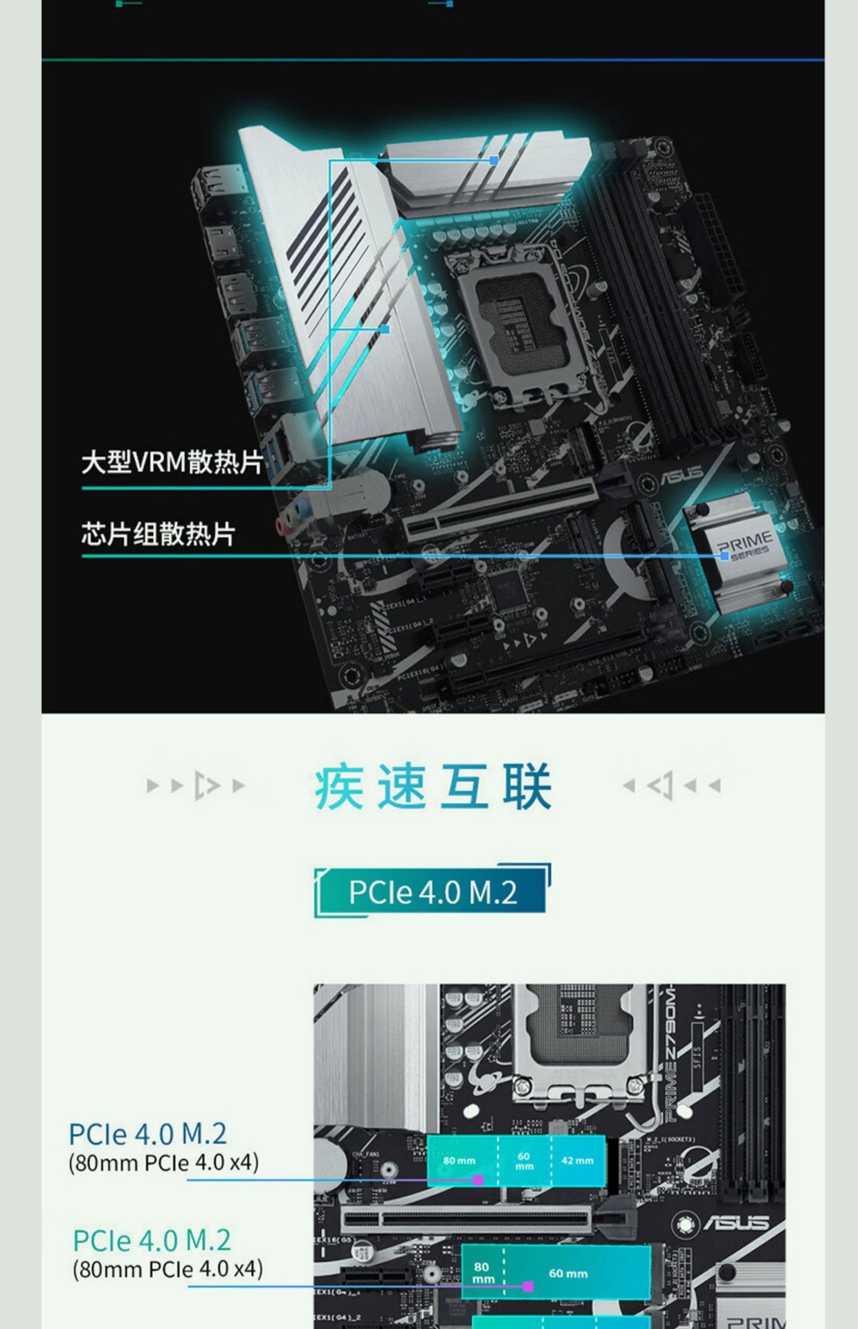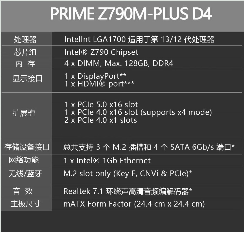 华硕PRIME Z790M-PLUS D4主板适用13代13600KF/13700KF/13900KF