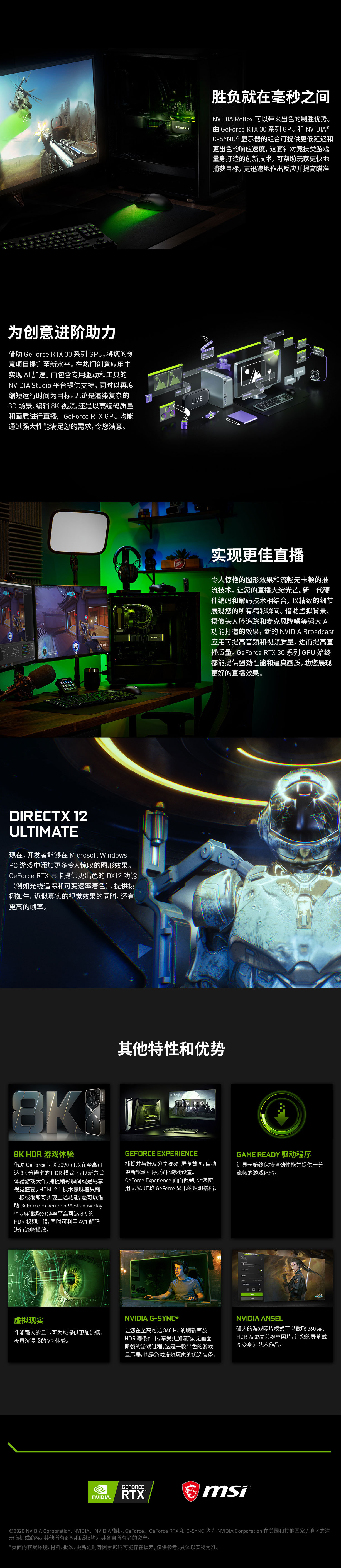 适用于微星MSI GeForce RTX 3080 SUPRIM X 10G LHR游戏显卡