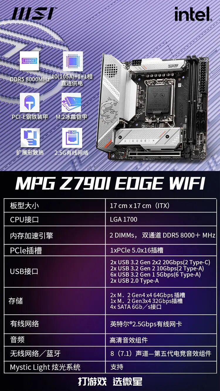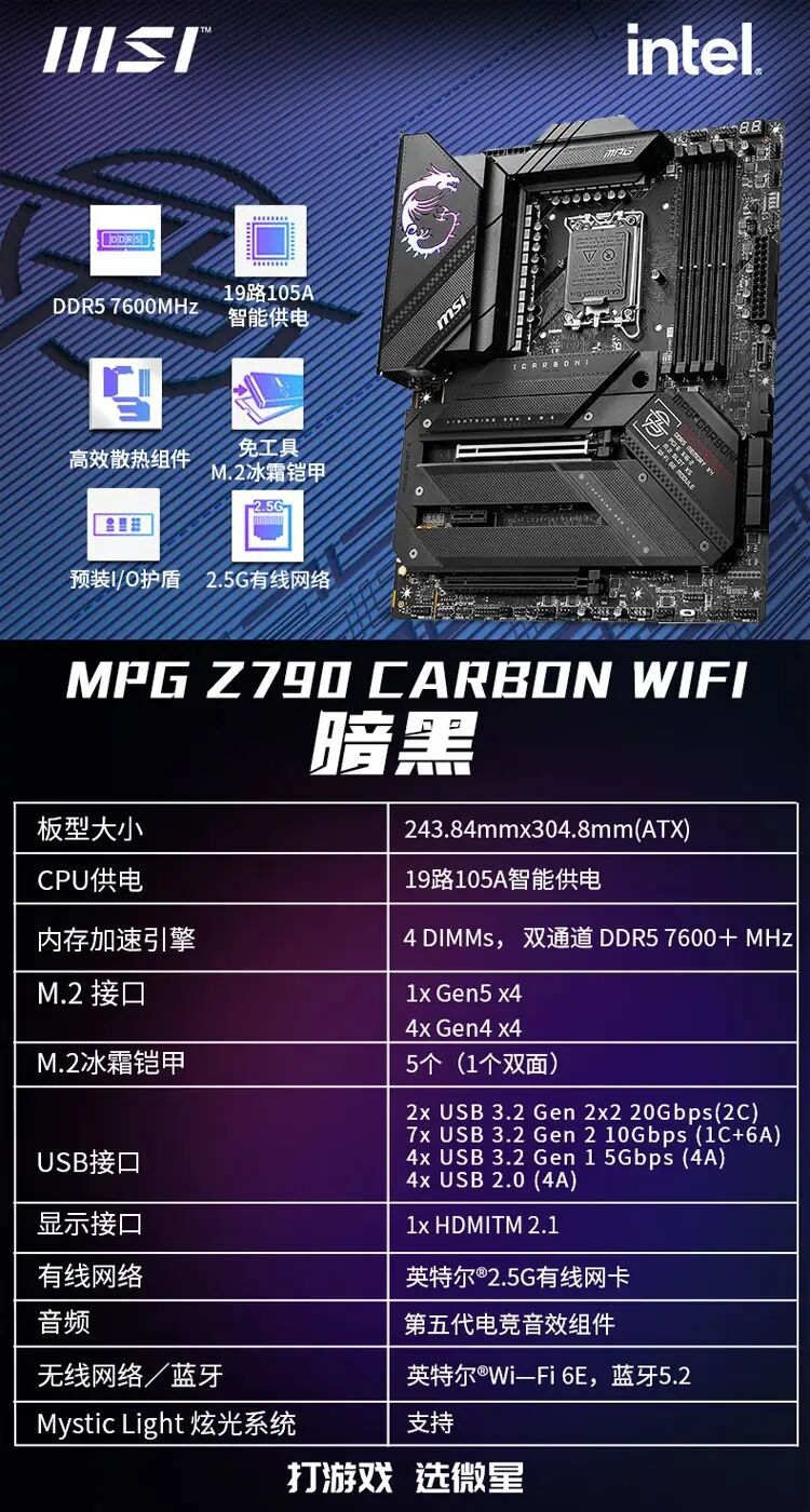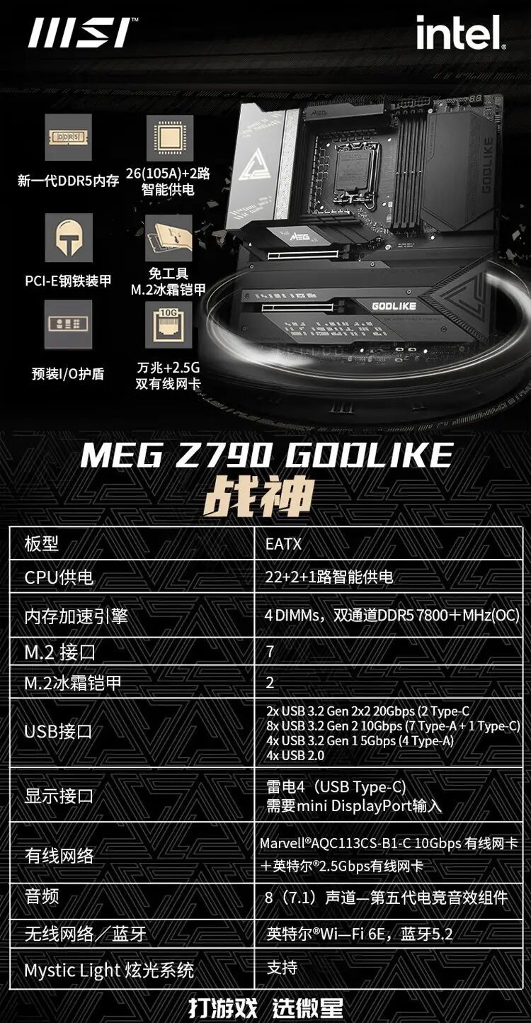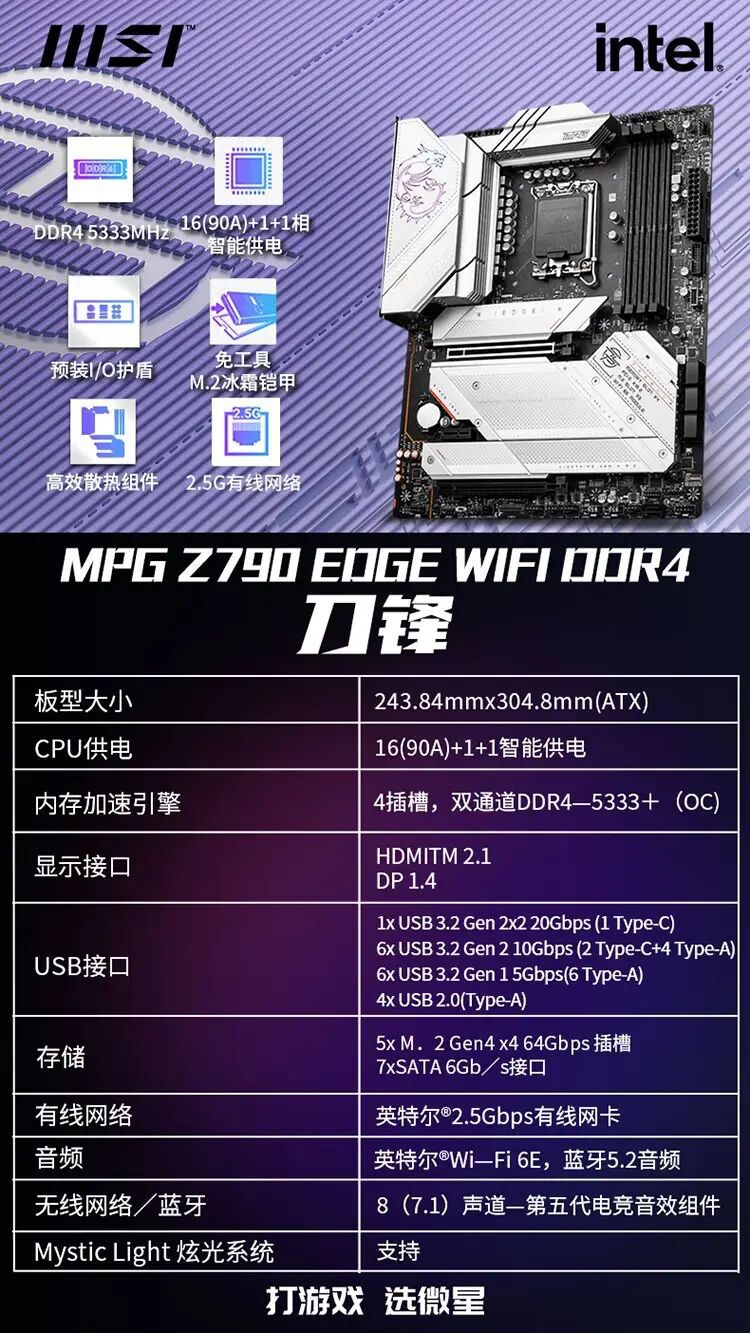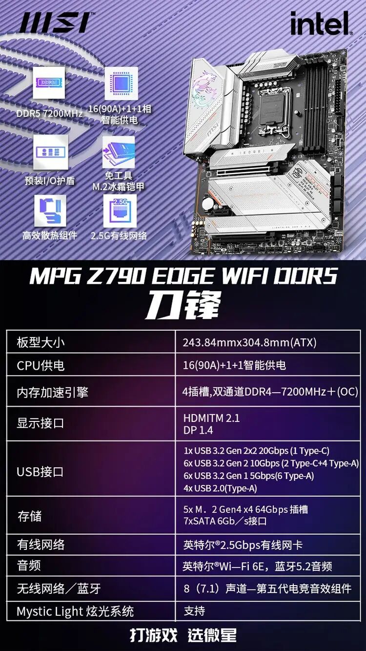 适用官方微星MSI Z790-A WIFI DDR5 支持13代 13600KF 13900KF