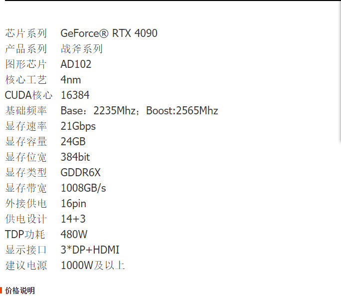 新品豪华战斧GeForce RTX 4090 24GB DDR6X 384 bit 电脑游戏 显