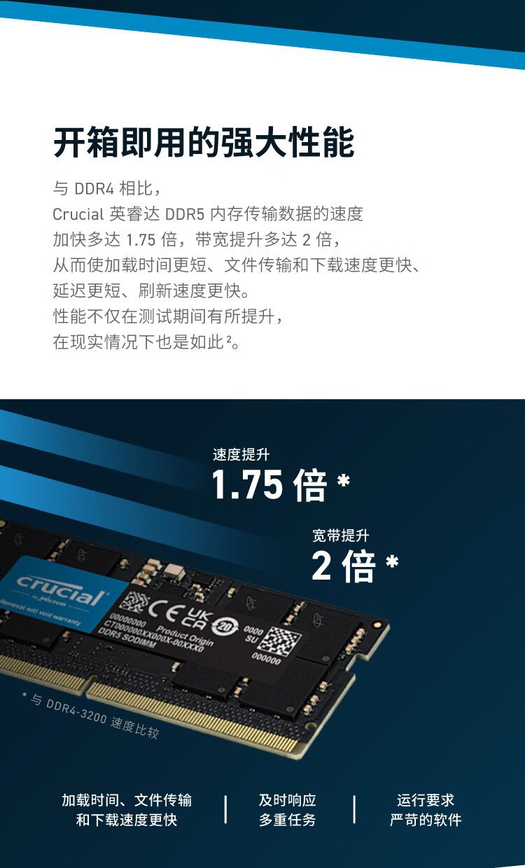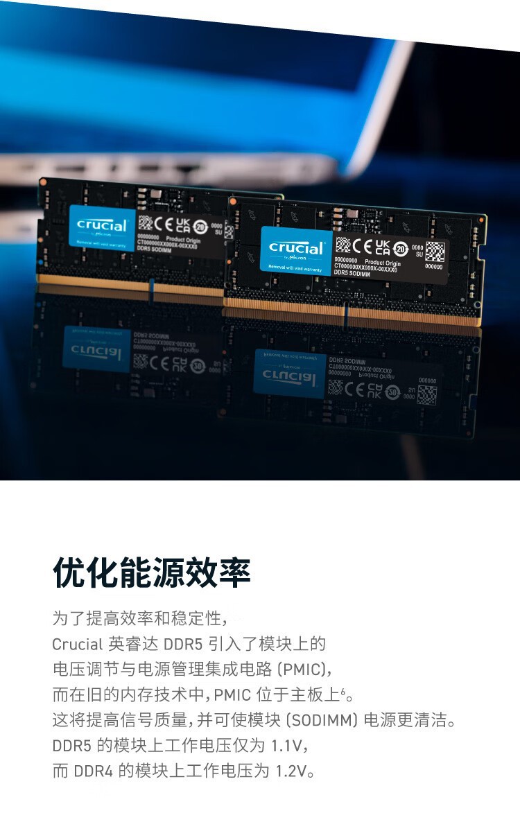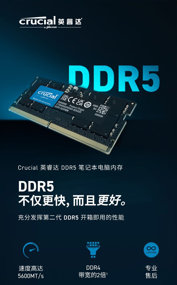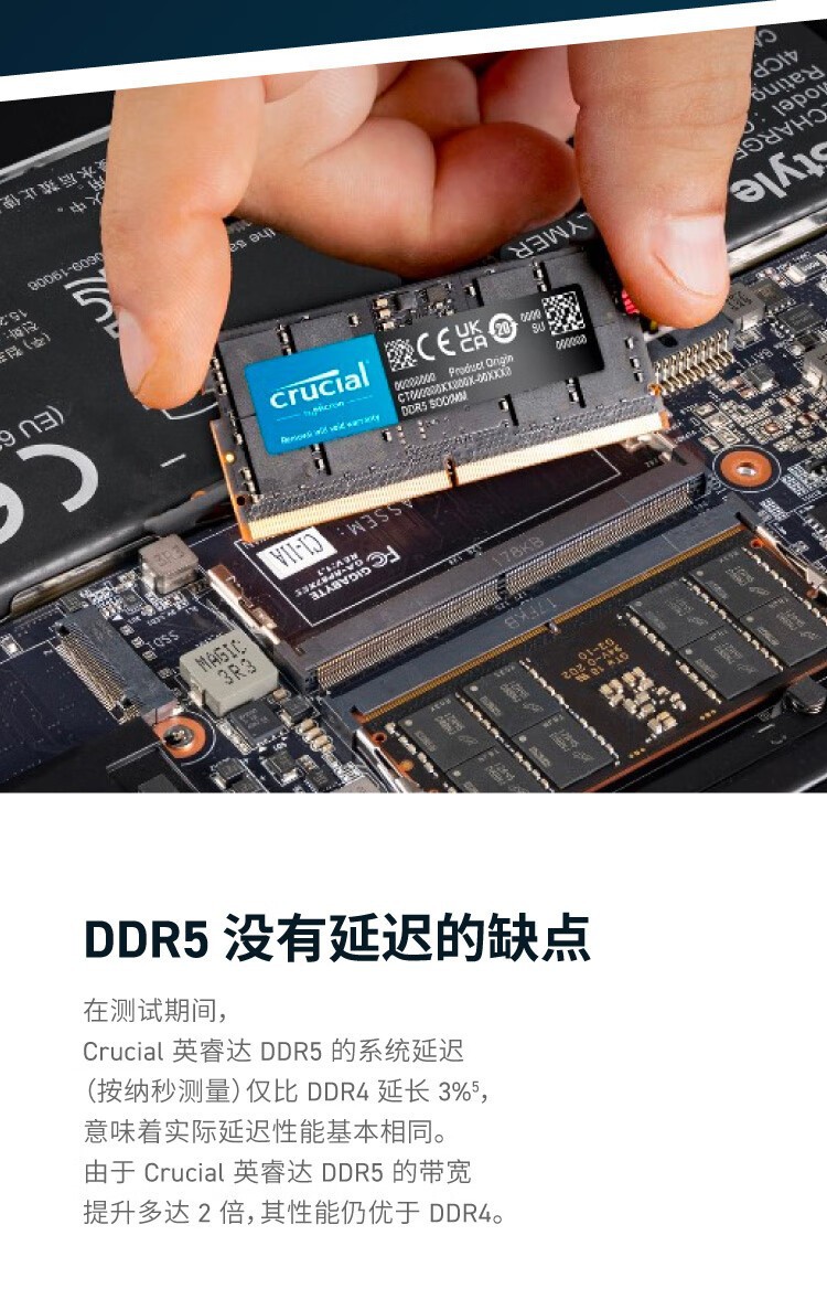 新品Crucial英睿达DDR5 5600频率16G24GB32GB48GB笔记本内存条