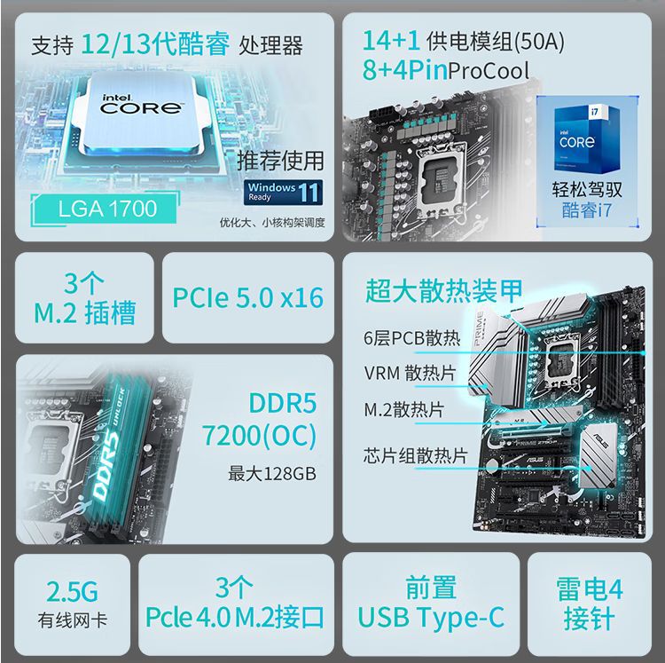 适用于官方华硕PRIME Z790-P D5主板 支持13代酷睿 13900KF