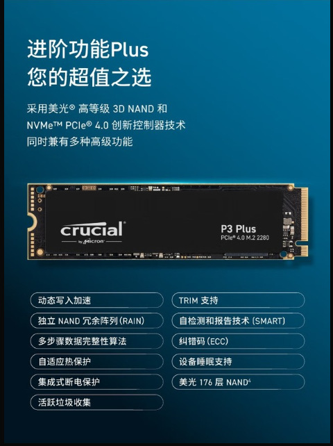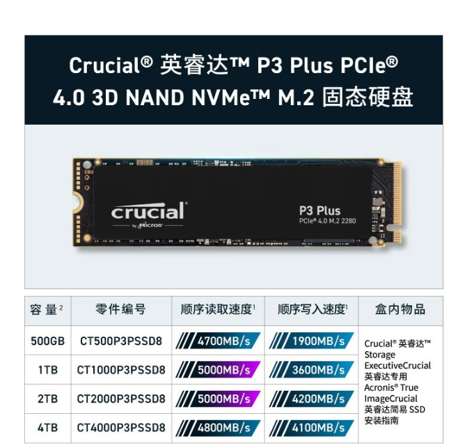 英睿达 P3 PLUS 系列 M2 2280 NVME 500G 1TB 2TB 4TB