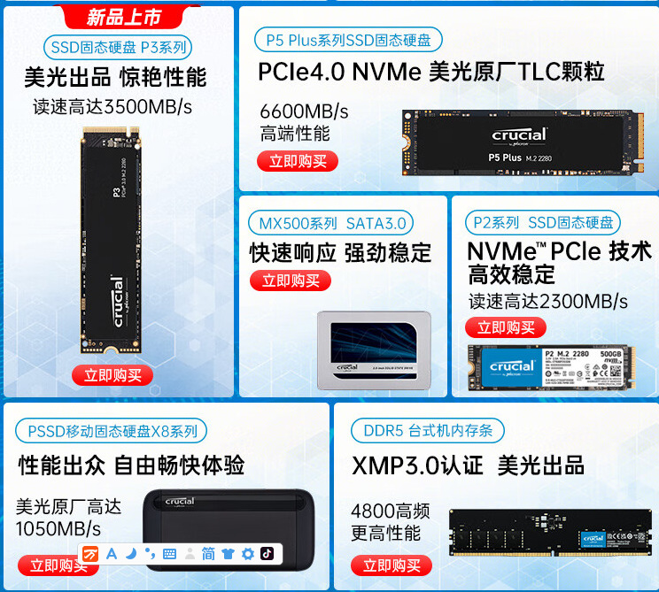 适用于英睿达Crucial美光MX500 250G500G1TB2TB SSD固态硬盘