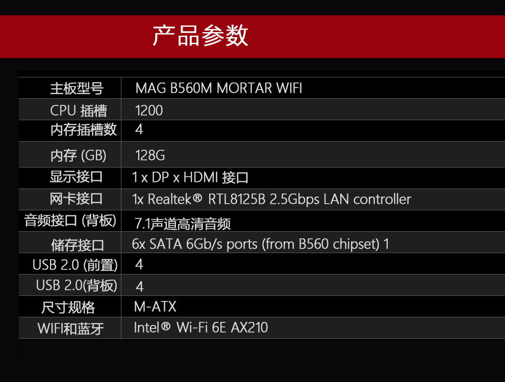 适用于 微星MAG B560M MORTAR WIFI