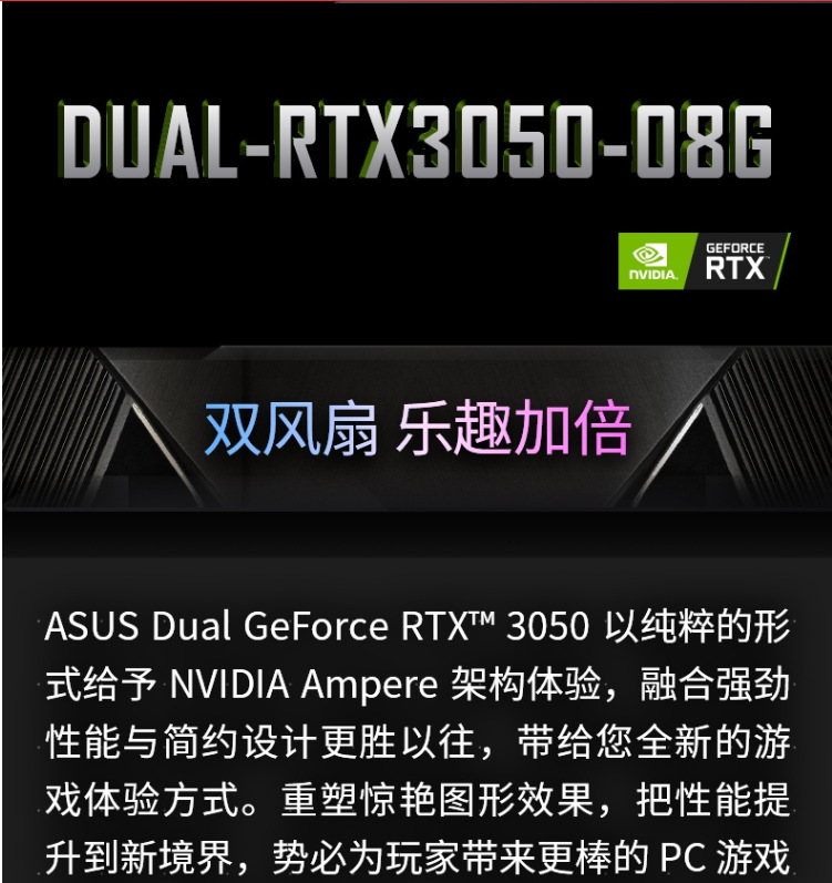 新品适用于华硕ASUS DUAL GeForce RTX3050-O8G LHR电竞游戏显卡