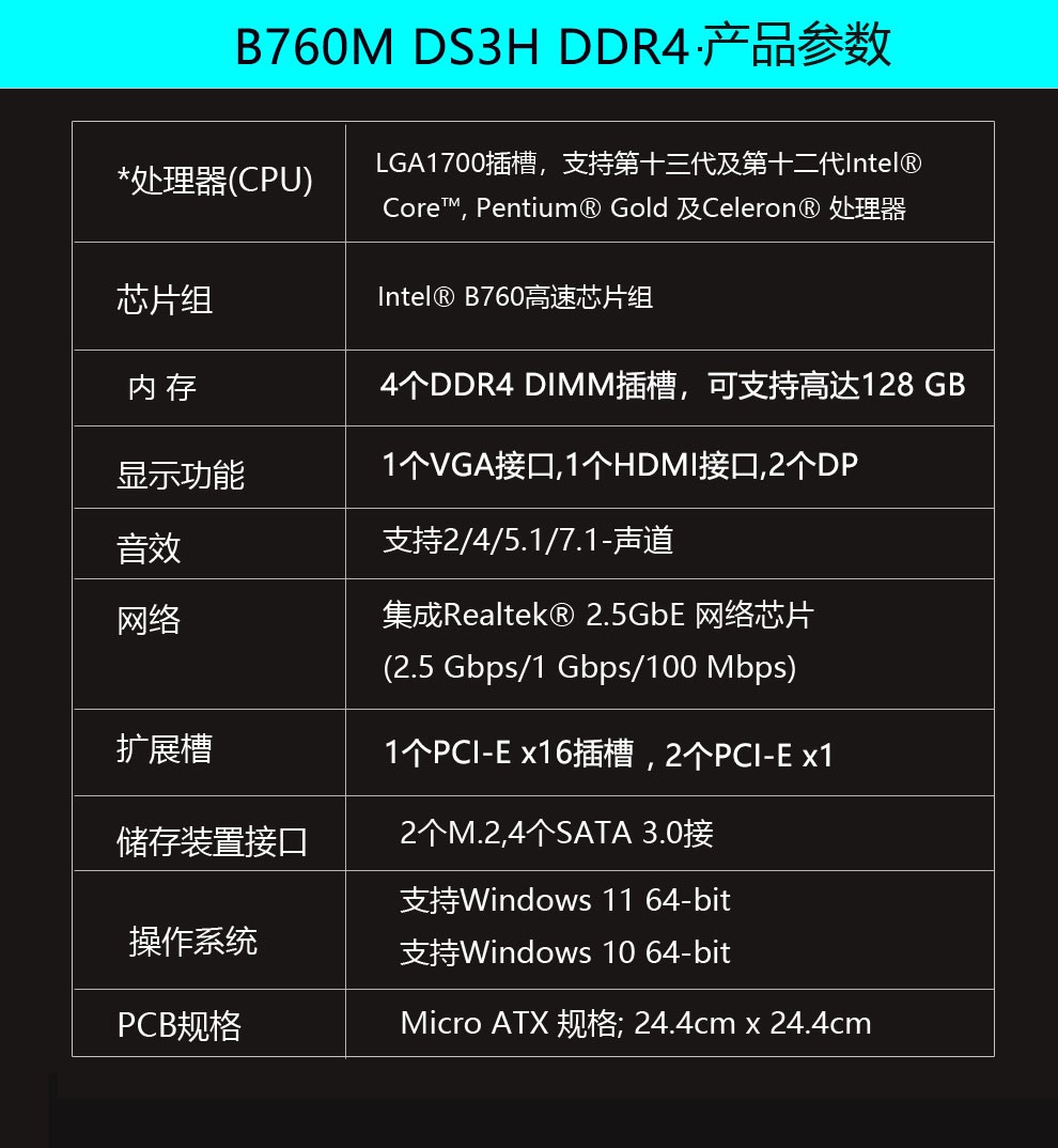 适用技嘉B760M DS3H DDR4台式机电脑主板适用i5 13400F/13600KF/1