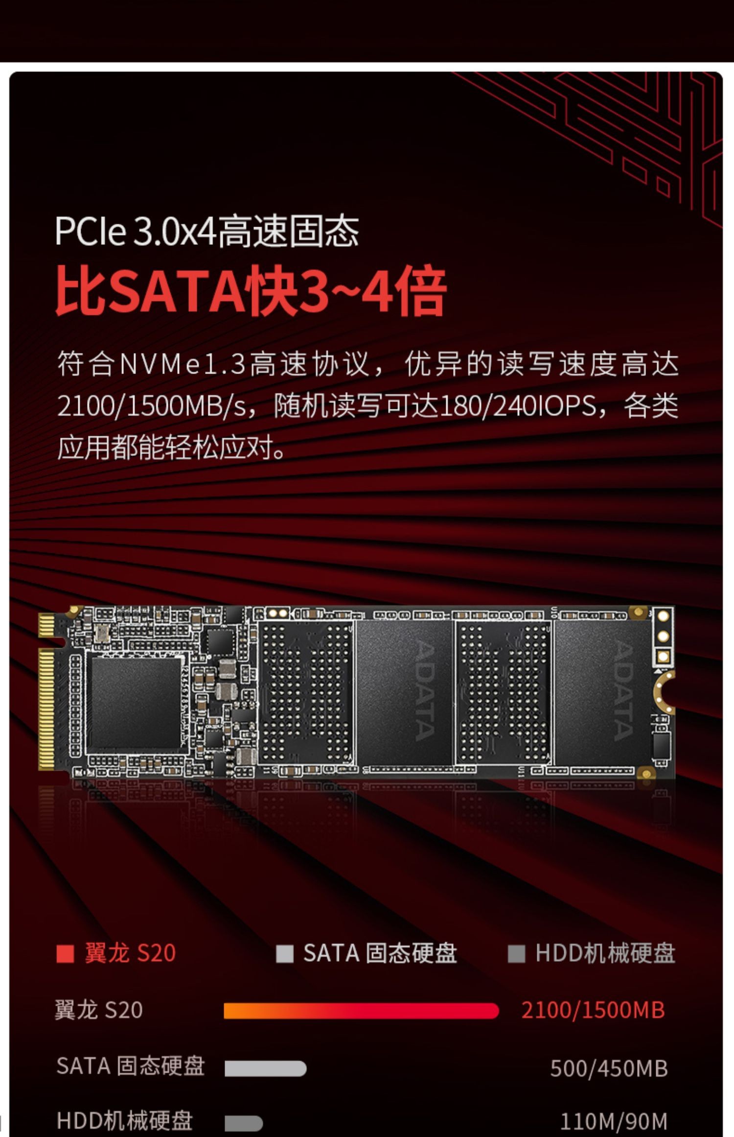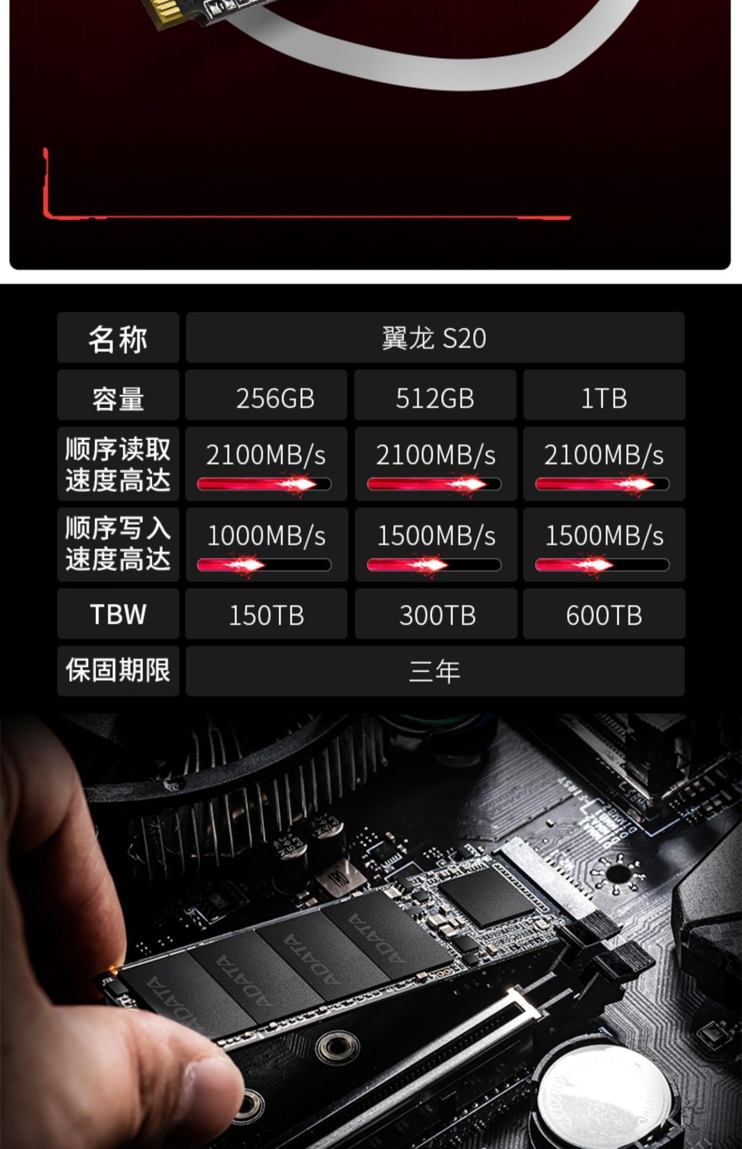 适用ADATA/威刚翼龙S20 256G/512G/1TB SSD固态硬盘PCIe3.0适用
