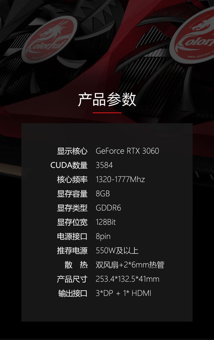 适用新品七彩虹Colorful战斧GeForce RTX3060 DUO8GB适用游戏电脑