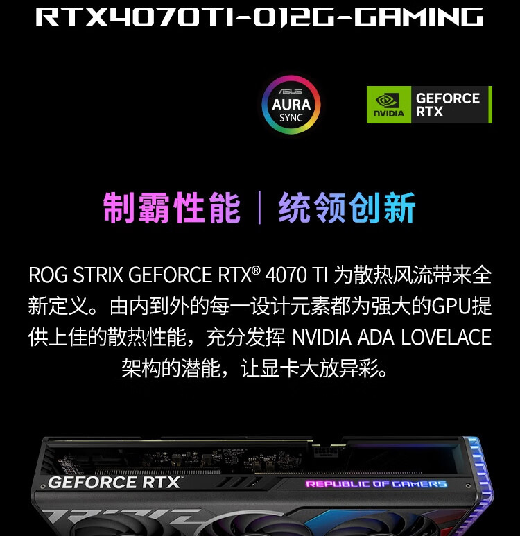 适用新品ROG STRIX GeForce RTX 4070 Ti-O12G-GAMING 电竞游戏显