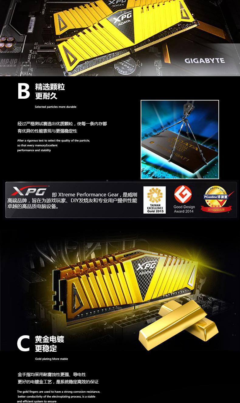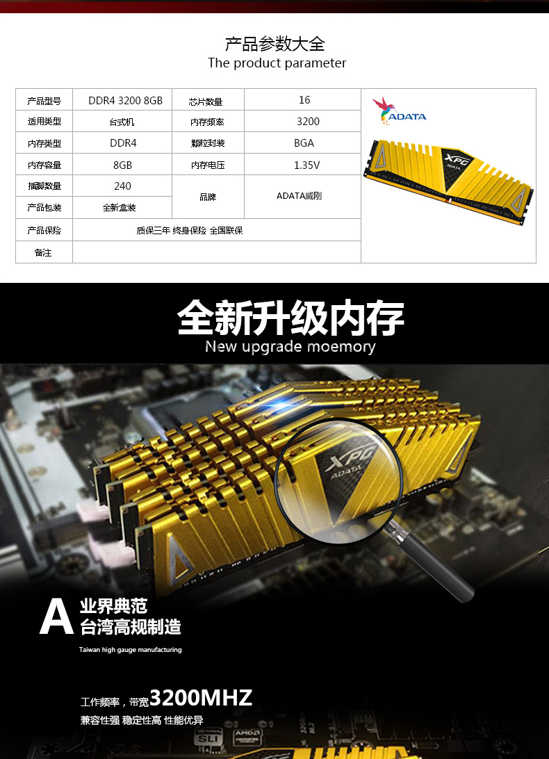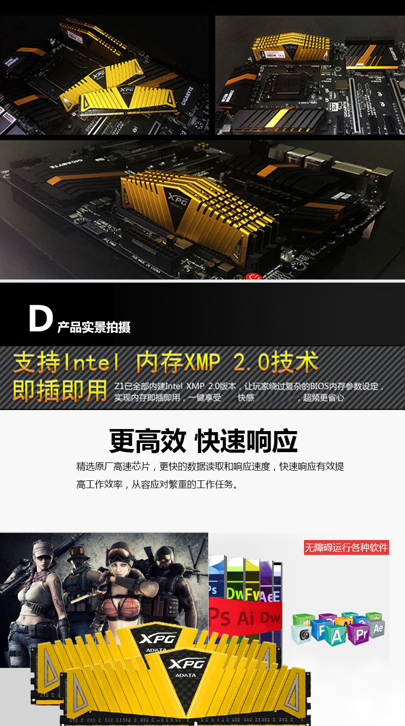 适用于官方正品威刚ADATA 万紫千红16G3200台式机条