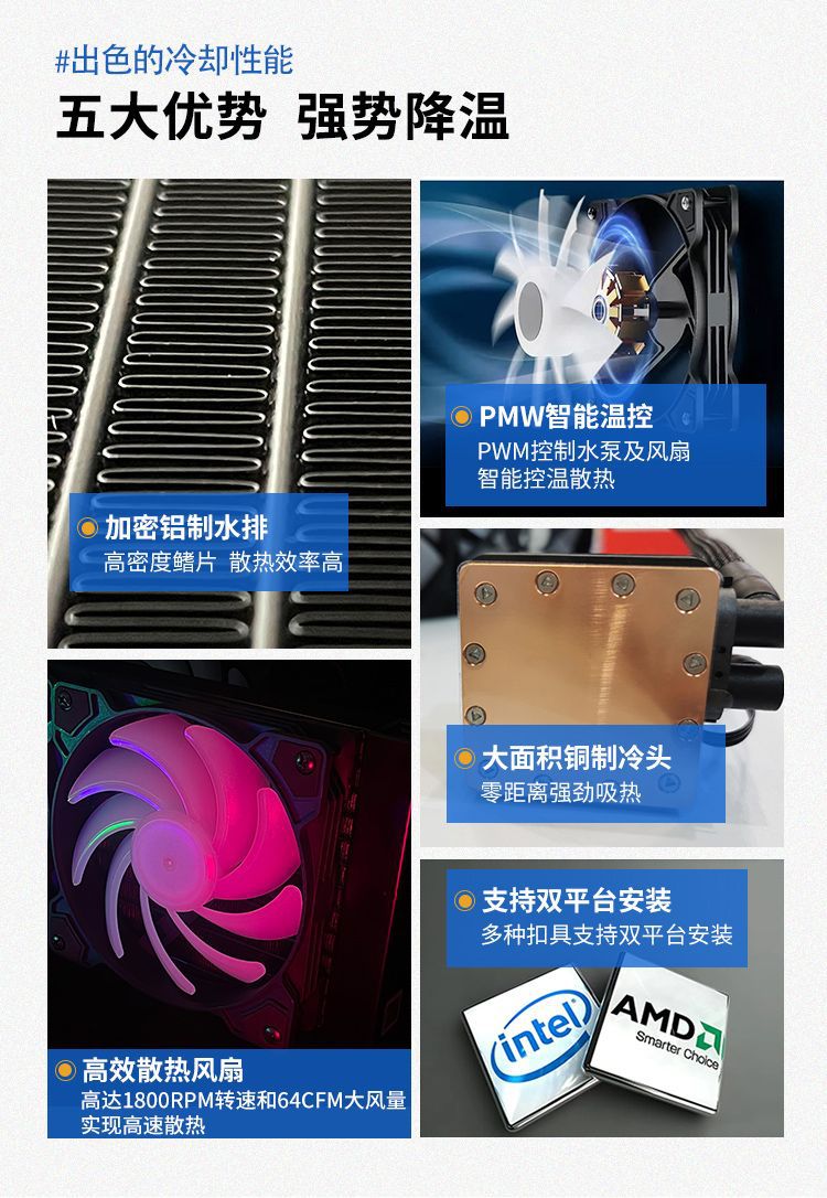 超频三巨浪120/240 cpu水冷散热器电脑台式机适用10代/11代/12代