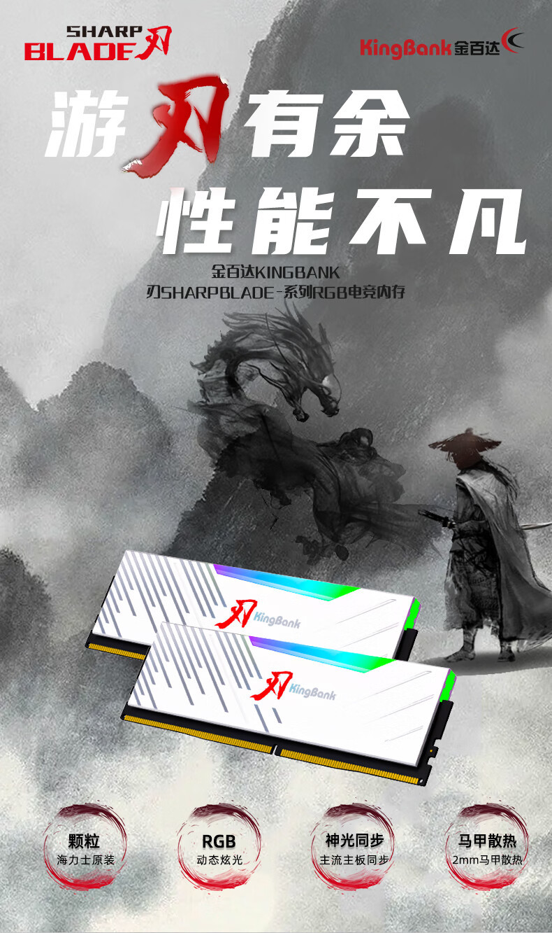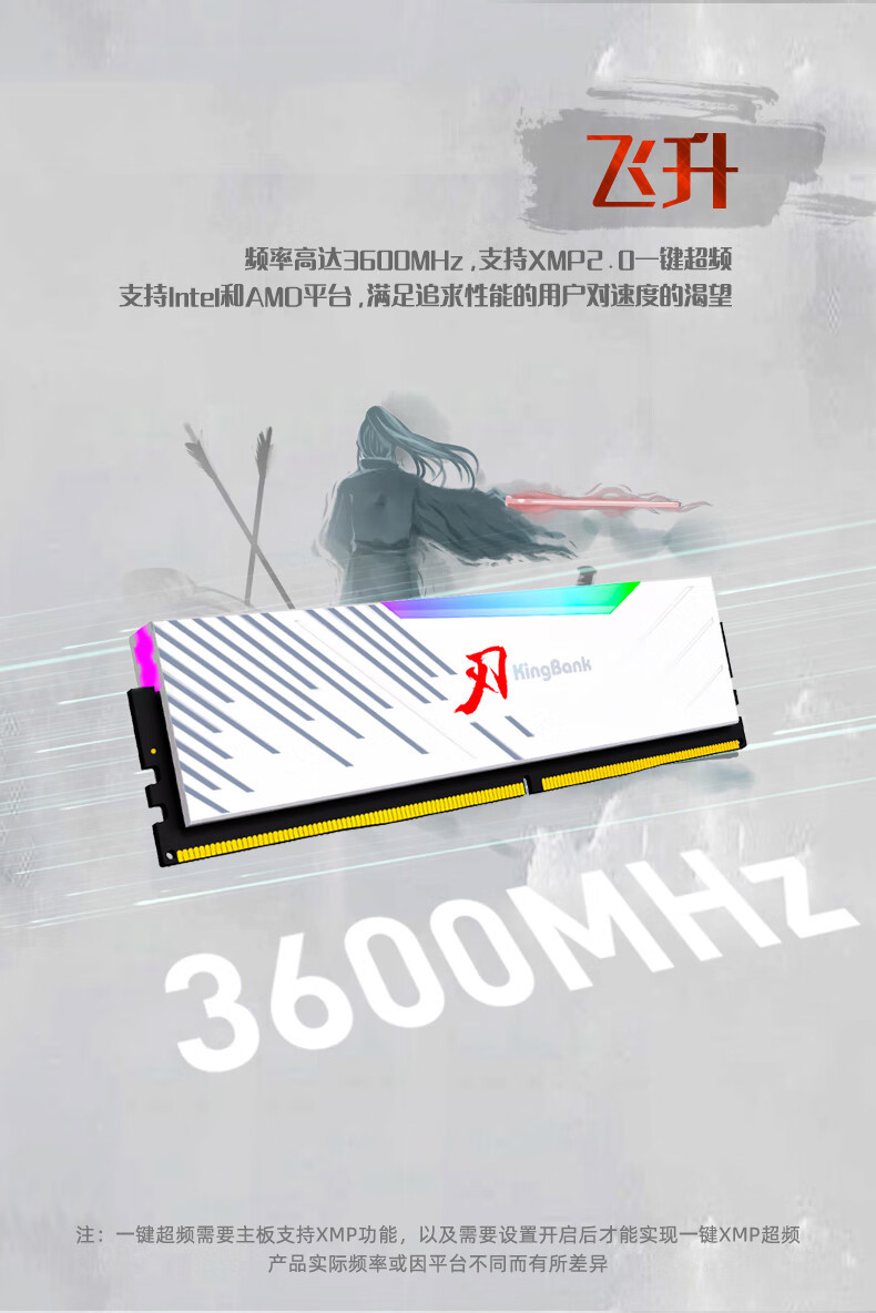 适用金百达16GB(8G×2)套装 DDR4 3600 台式机内存条 RGB灯条