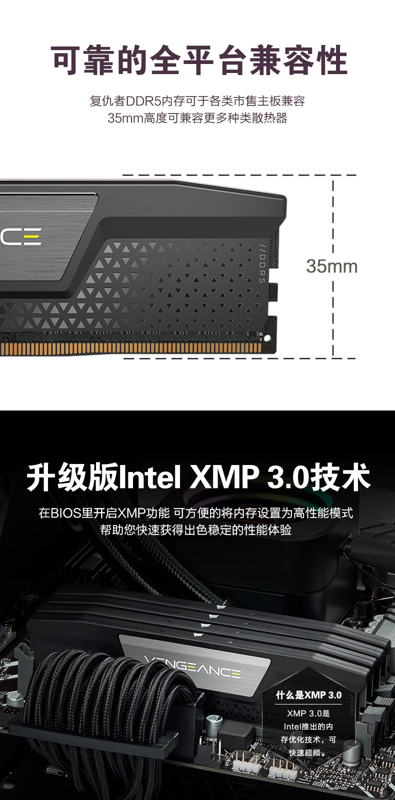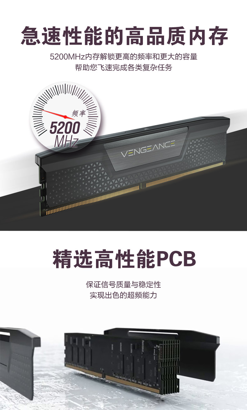 适用美商海盗船32GB(16G×2)套装 DDR5 5200 台式机内存条 复仇者