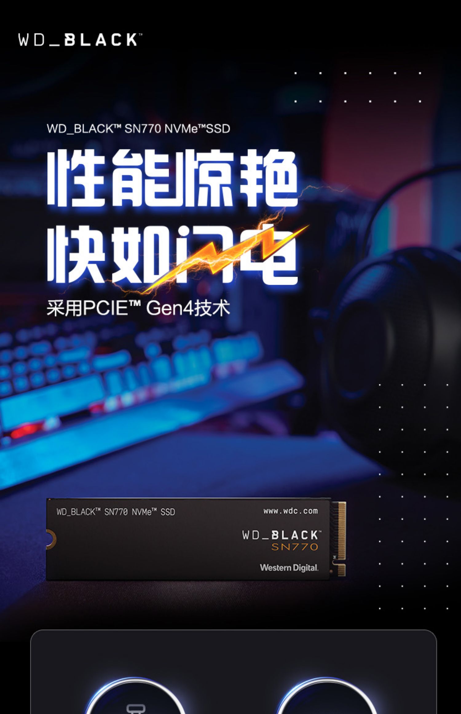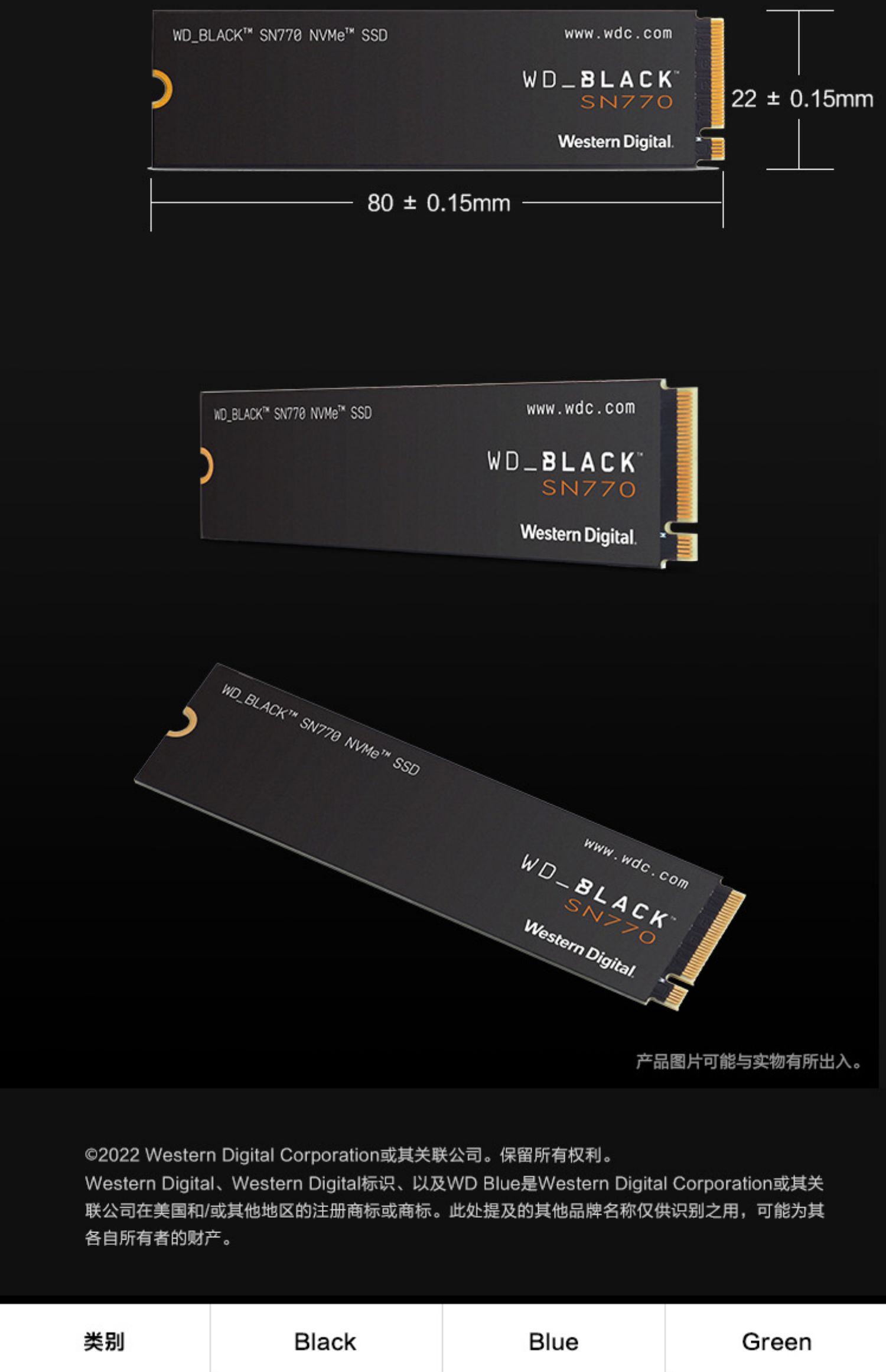 适用WD/西部数据SN770黑盘500G 1T M.2 NVME PCI-E SSD固态硬盘适